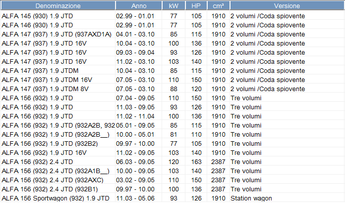 Costo pompa frizione alfa 147 jtd pressione Senti la