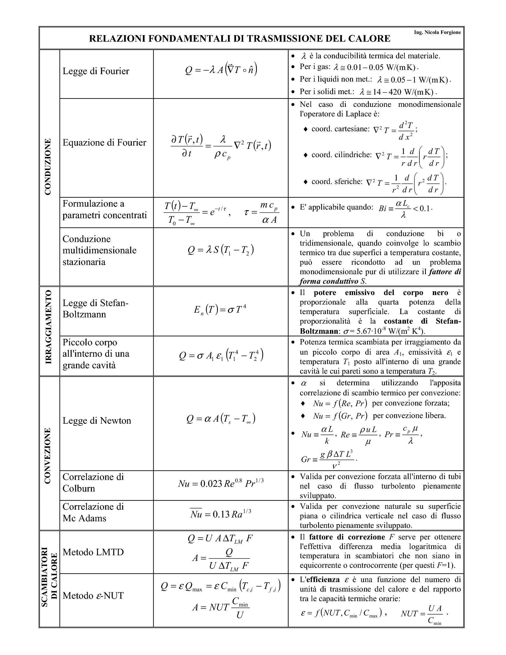Analisi degli scambiatori di calore con il metodo dell efficienza NTU. Fondamenti di fisica tecnica per l&aposingegneria chimica Conduzione termica in regime stazionario, il postulato e l equazione di Fourier, conduzione termica in pareti piane cilindri e sfere. Il trasferimento di calore pu avvenire per conduzione, convezione, irradiazione. La conduzione avviene quando si in presenza di un gradiente di. Di calore per conduzione in prossimit del film incrostante lato caldo e lato freddo. Appunti di dinamica dei fluidi e scambio di calore.